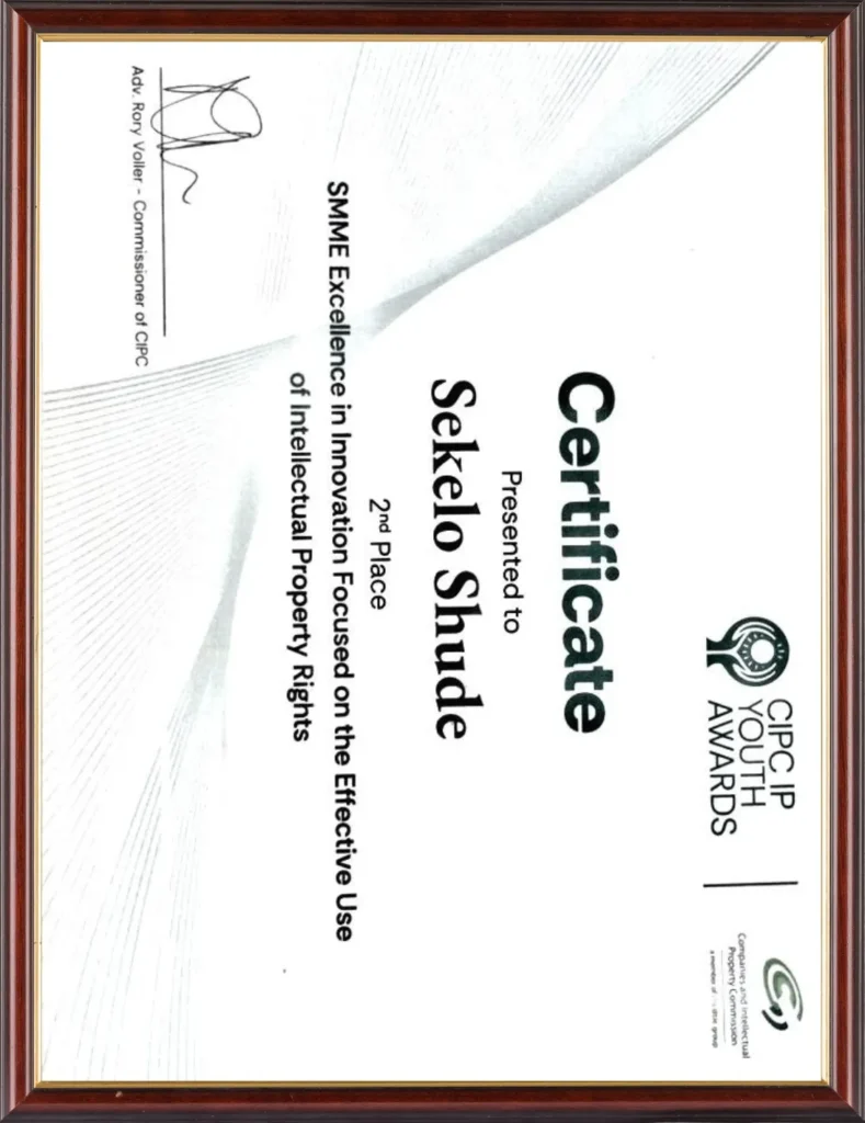 Awarded 2nd Place by the CIPC IP Youth Awards for excellence in innovation focused on the effective use of intellectual property rights. This recognition highlights the strength of our protected innovation and our commitment to developing sustainable solutions through legally secured intellectual property.